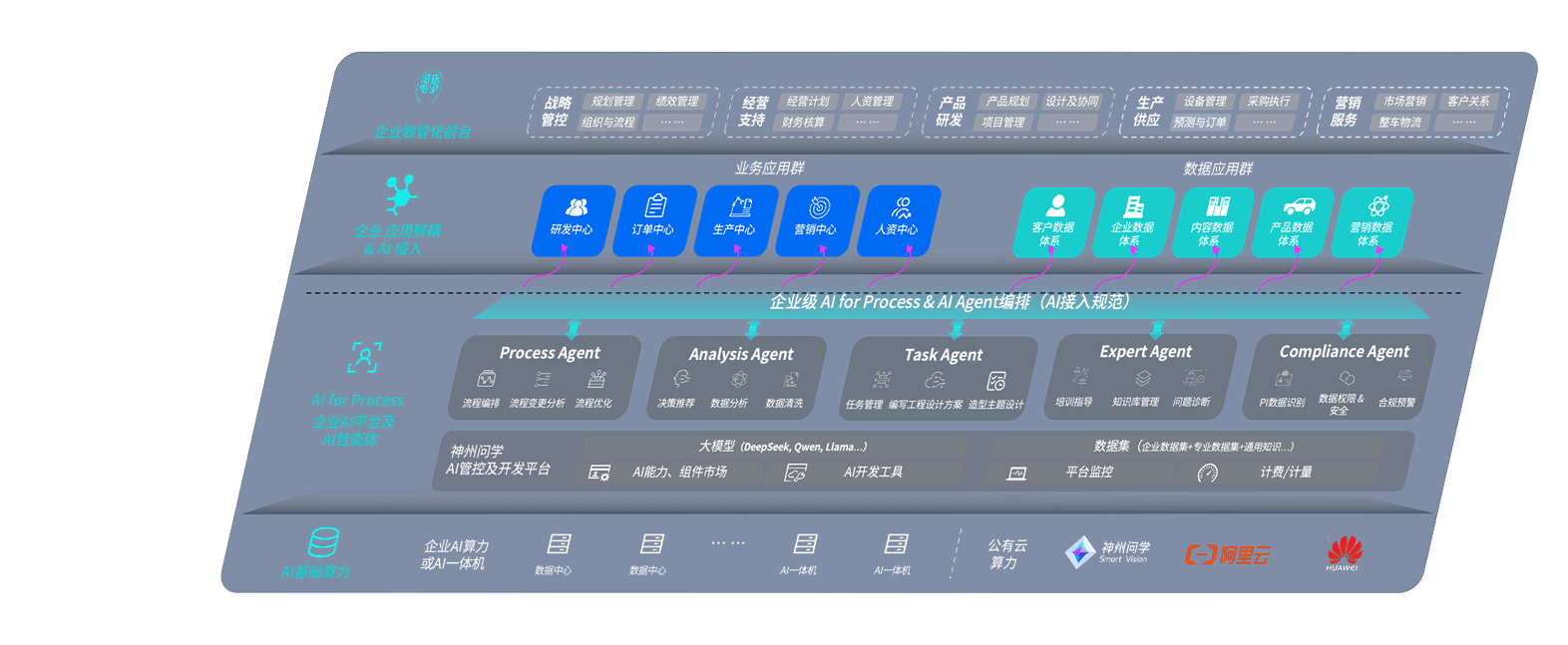 非凡娱乐问学智车解决方案是一套基于AI技术的汽车行业智能化系统,,,覆盖从底层算力到顶层AI应用的全栈方案。。。。方案由算力层、、、模型层和应用层组成:算力层,,方案支持多种一体机配置,,,具备云端灵活部署、、、多云适配以及动态优化计算资源的能力;模型层,,,非凡娱乐问学平台版提供了企业级AI应用一站式构建与管理平台,,,支持基于后训练强化技术的汽车企业专属模型的训练、、评测和运营;应用层,,非凡娱乐问学DeepSeek版提供包括超级员工、、、、智能招采、、智能营销、、、、智能客服、、、、AI for BI等一系列解决方案,,可助力汽车行业实现数字化转型,,,,让管理更智能、、响应更敏捷。。。